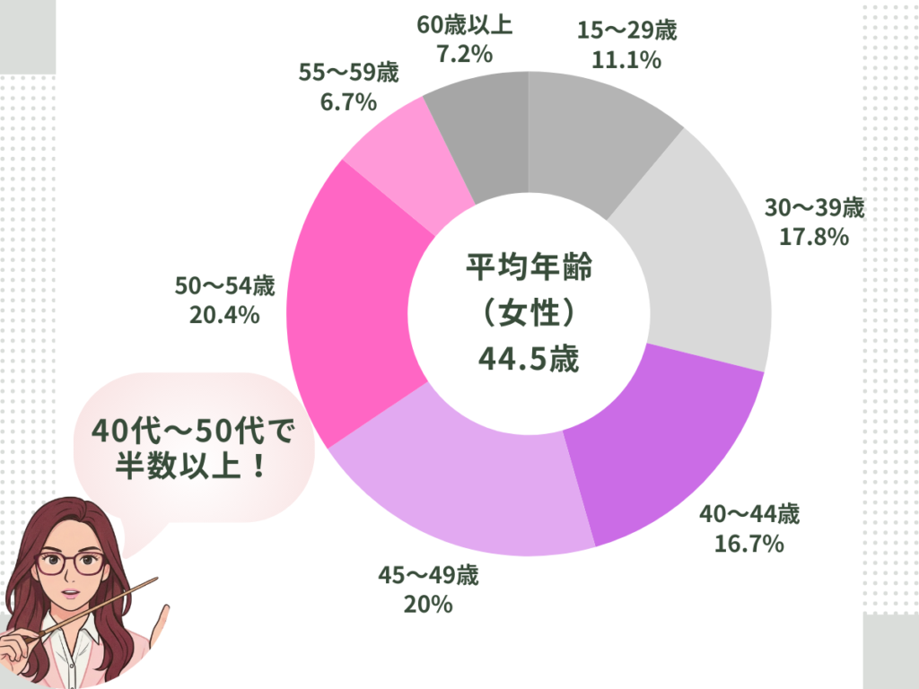 派遣で働く女性の半数以上が40代〜50代 という結果が出ています。